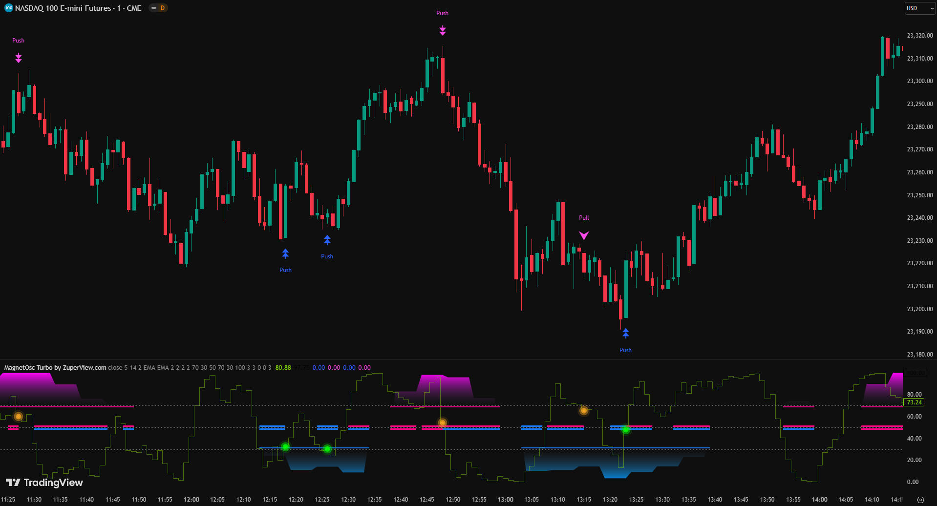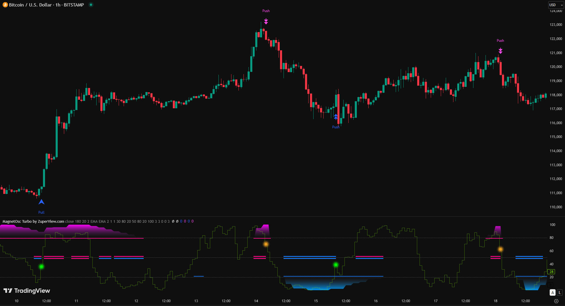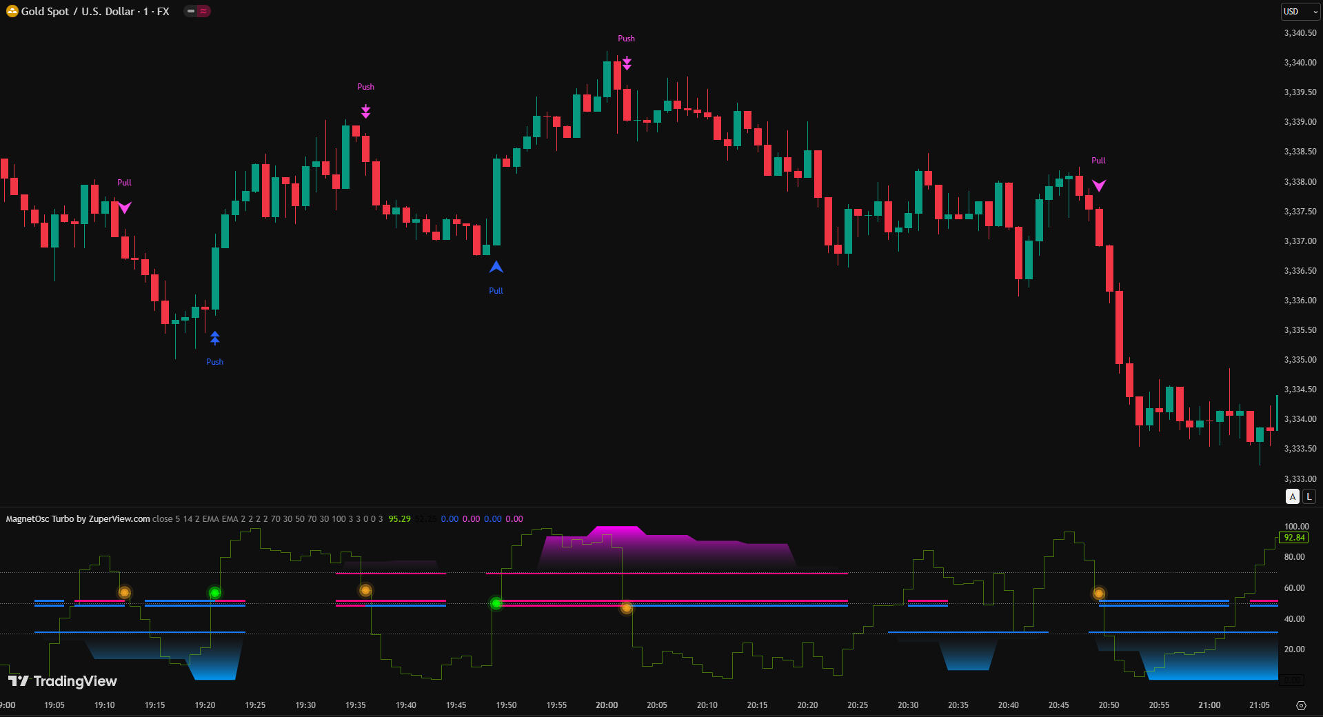 ● Visually confirm MagnetOsc Turbo signals with OB/OS overlaps