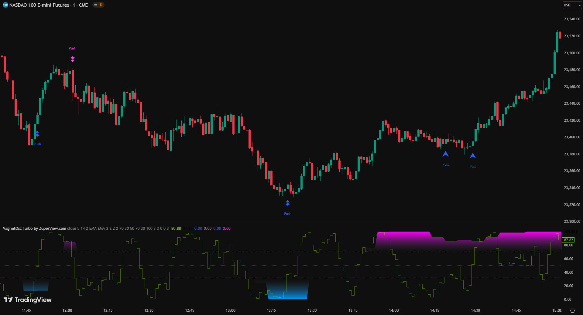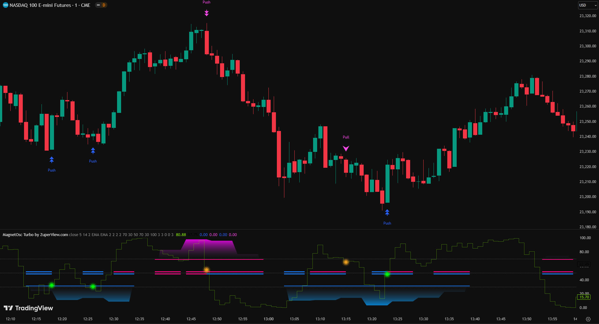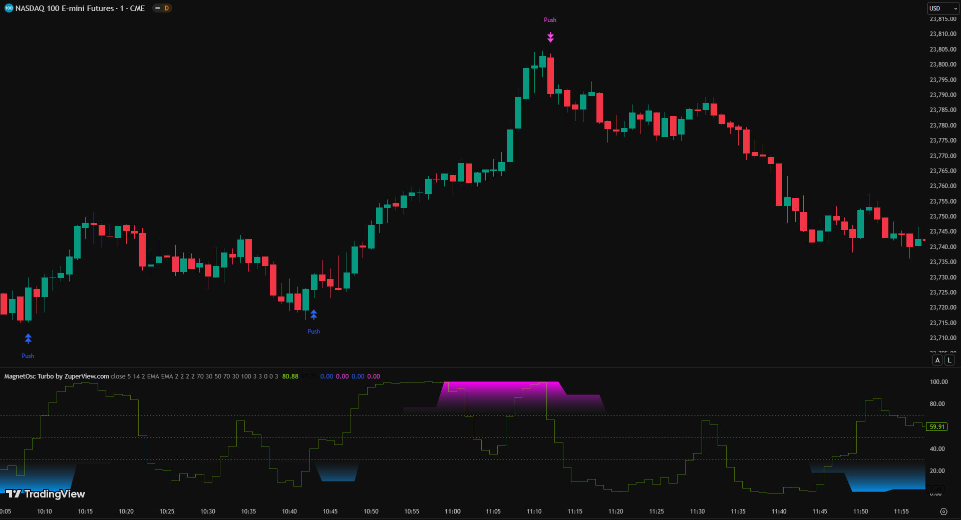 ● Visually confirm MagnetOsc Turbo signals with OB/OS overlaps