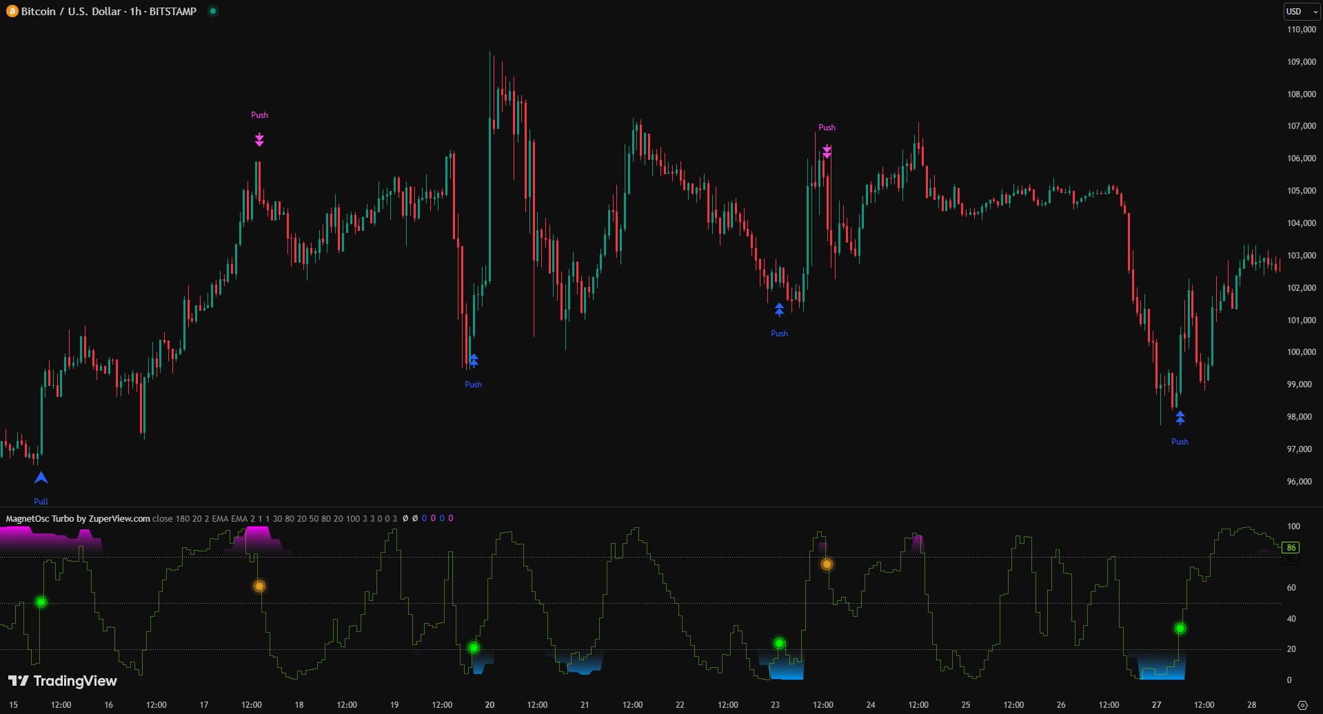 Have you ever faced this situation? You open your chart, see the oscillator flashing overbought/oversold… and hesitate:Is this the real signal of a reversal? Or is the market just gearing up for a breakout continuation?If you've felt that uncertainty, you'll understand why we built MagnetOsc Turbo.